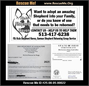 KnJs SHEPHERD HAVEN 513-417-6238 Please join our GROUP. Then go to the ALBUM 'CURRENT SHEPHERDS NEEDING REHOMED'